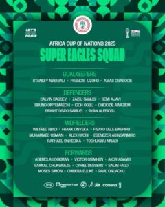 The roster features a strong blend of experience, returning names, and fresh faces as Nigeria aims to reclaim continental glory.